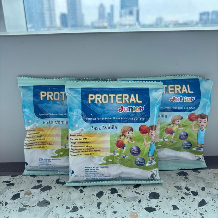 Salah satu cara mudah untuk membantu Si Kecil tetap mendapatkan nutrisi lengkap adalah melalui susu pertumbuhan yang dibuat khusus untuk anak usia 1-3 tahun, seperti PROTERAL Junior. Produk ini hadir dengan berbagai manfaat penting untuk mendukung tumbuh kembang Si Kecil: